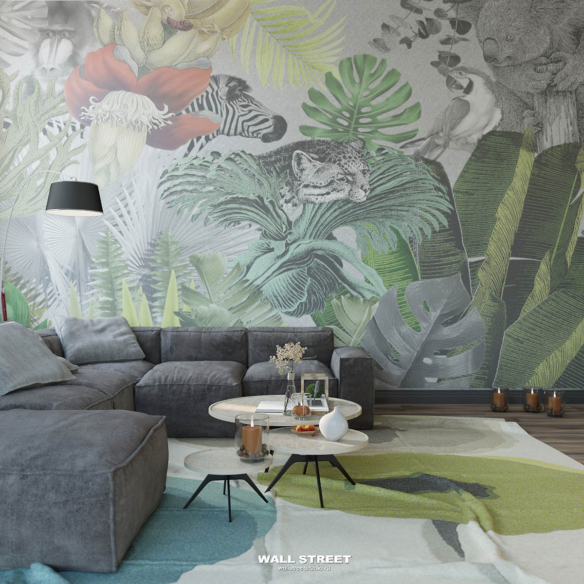 Обои из коллекций Wall Street в трех комнатах: EUPHORIA 22 в гостиной, Zoo в детской комнате, а в спальне Selva