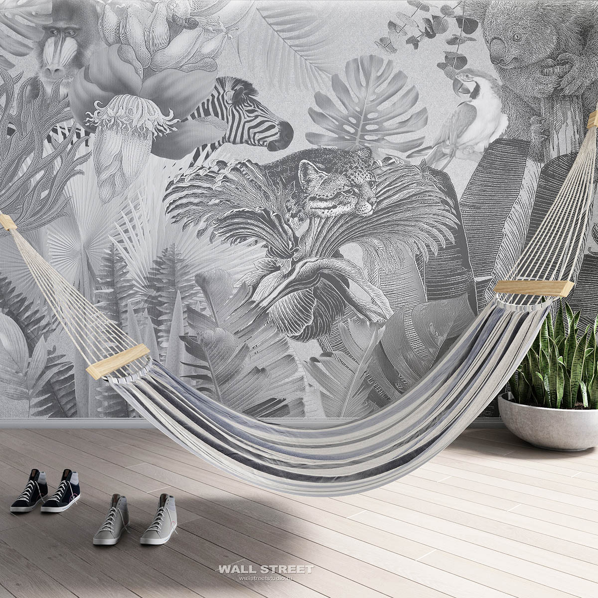 Обои из коллекций Wall Street в трех комнатах: EUPHORIA 22 в гостиной, Zoo в детской комнате, а в спальне Selva