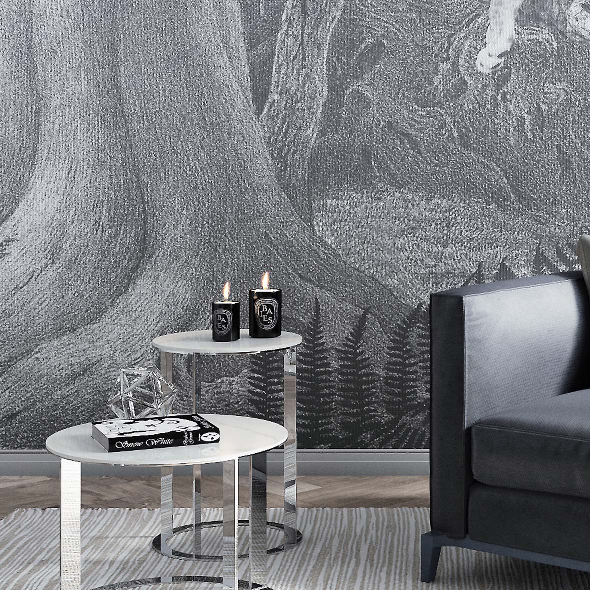 - Адаптация изображения под размер вашей стены с учетом расстановки мебели