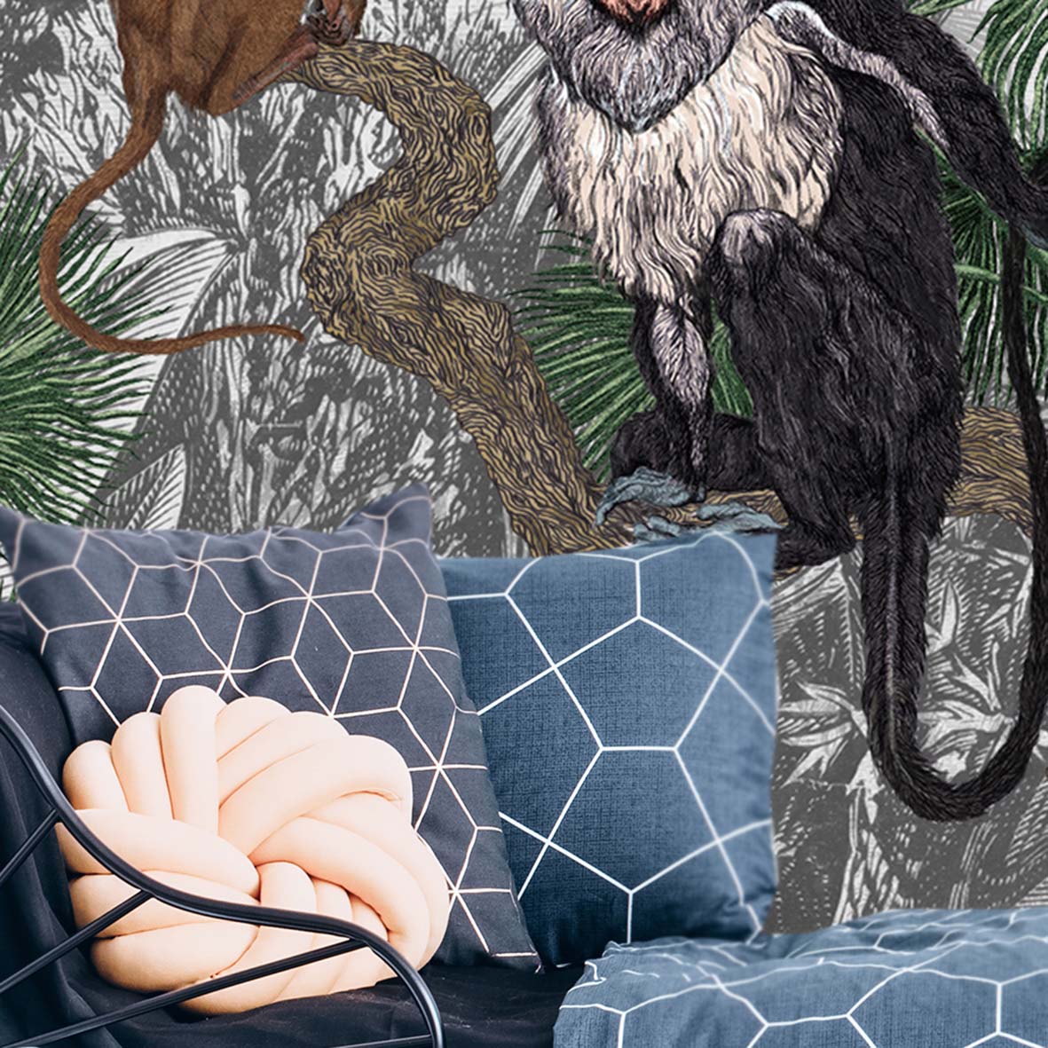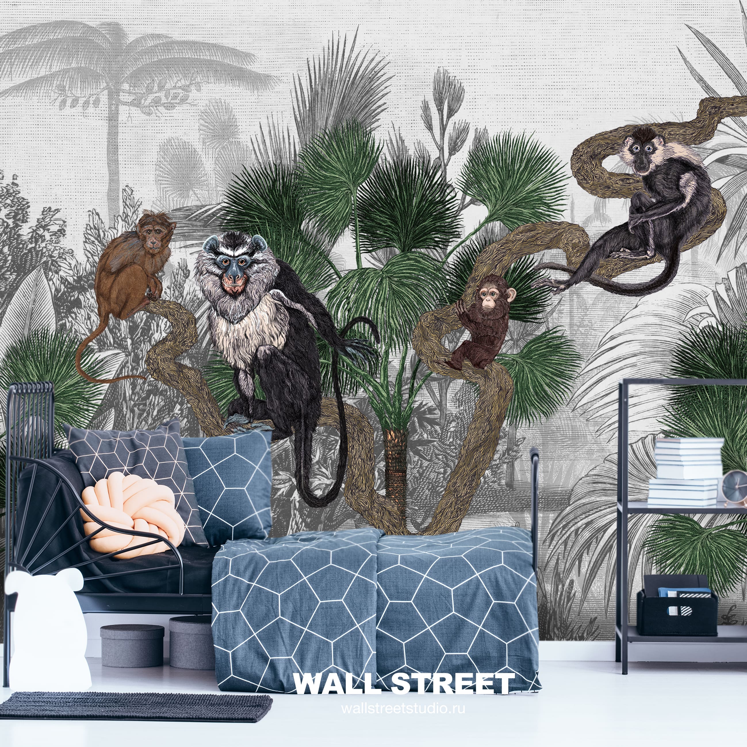Обои из коллекций Wall Street в трех комнатах: EUPHORIA 22 в гостиной, Zoo в детской комнате, а в спальне Selva